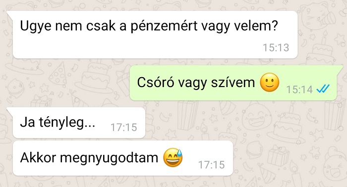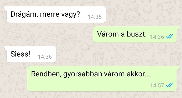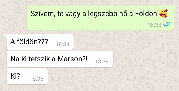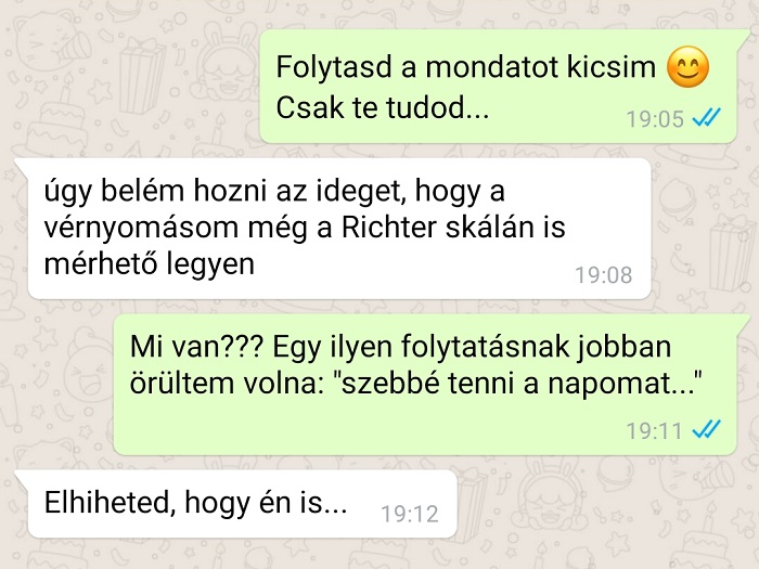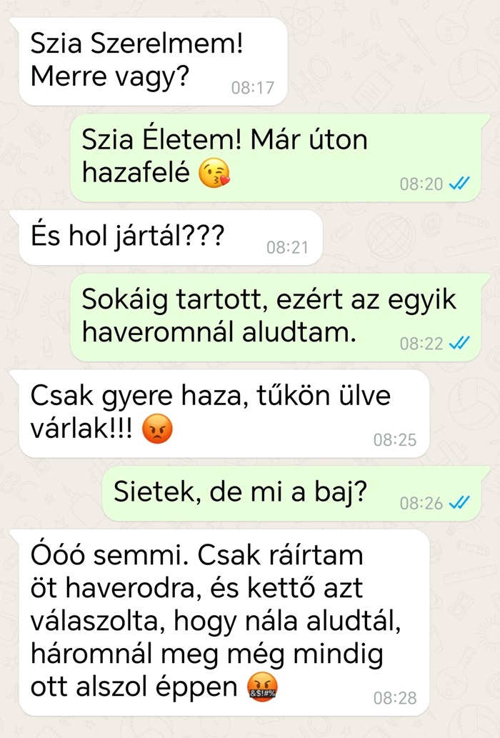 Egy kapcsolat akkor jó igazán, ha a mindennapi kommunikáció nemcsak a bevásárlólistáról vagy a rezsiről szól, hanem néha egy kis humor és szurkálódás is belefér. Az okostelefonok világában a legtöbben inkább chatelnek, mint telefonálnak – egyszerűbb, kényelmesebb, és valljuk be, sokszor szórakoztatóbb is. Az üzenetekben mindenki megpróbálhatná előre megválogatni a szavait… de a valóságban gyakran olyan párbeszédek születnek, amelyek tökéletesen bizonyítják: a szerelemhez (és néha a türelemhez) is kell jó adag humorérzék.