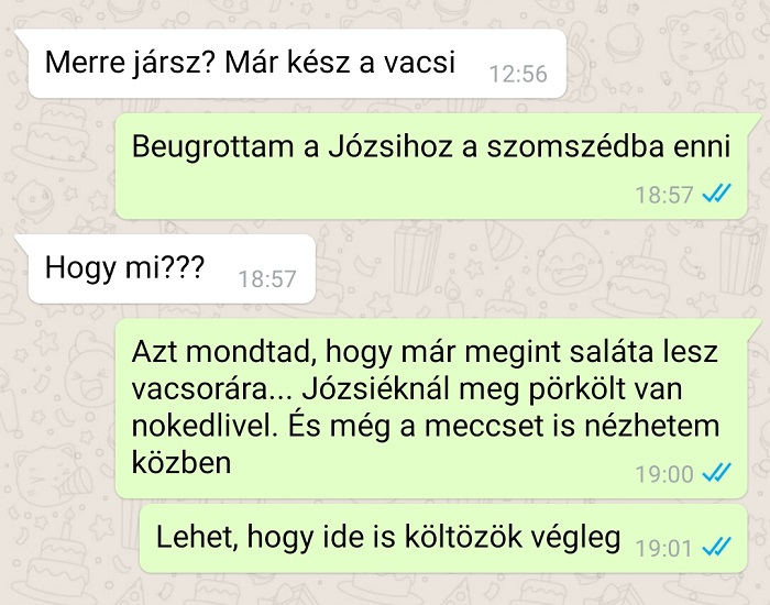 (5) Valószínű, hogy Józsi felesége sem hagyja majd szó nélkül ezt az üzenetváltást.