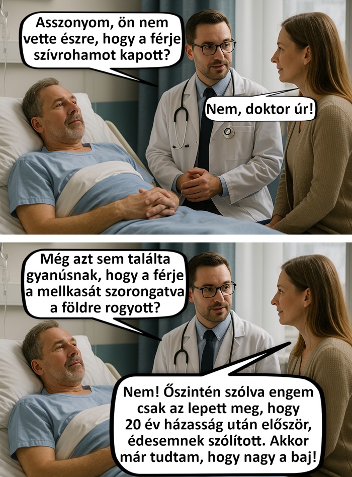 12. Bár nehéz elhinni, de azért eljött az a pont, ahol már a feleség is gyanút fogott, hogy valami nincs rendben a férjével, és orvosra van szükség.