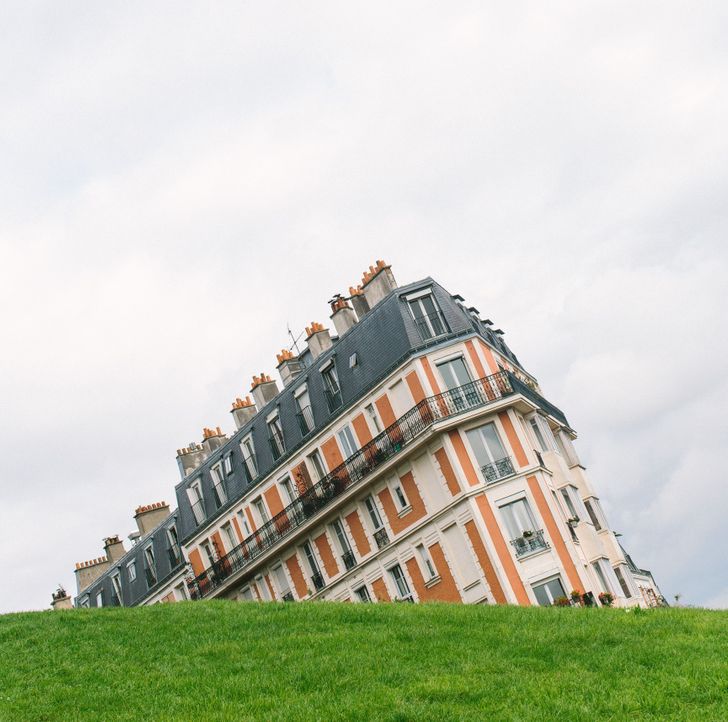 Ismét a szögek játszottak veled! A ház a Montmartre-hegyen található, és sokan használják, hogy fényképeket készítsenek ezzel a szokatlan perspektívával. Így néz ki ez a ház, ha normál szögben készít róla képet.