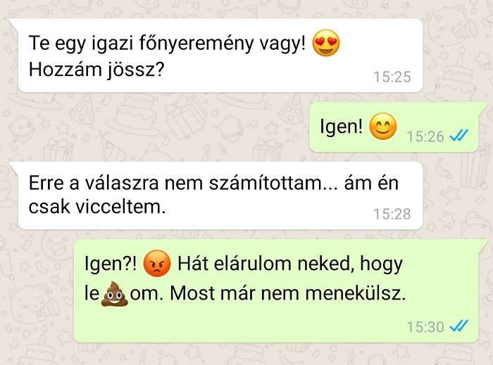 (10) A srác a lánykérés alkalmából 99 iphone-nal lepte meg a szíve választottját, de ez sem volt elég a boldogító igenhez. Legközelebb talán inkább 100 telefonnal kellene próbálkoznia.