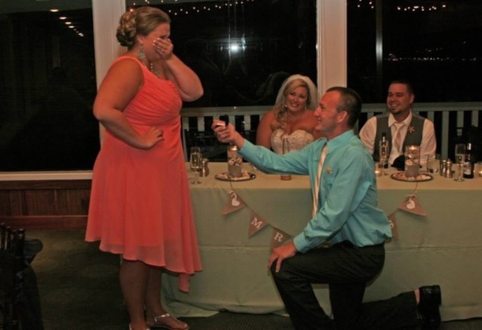 (9) A fickó meghívott vendégként másnak az esküvőjén szánta rá magát, hogy megkéri a barátnője kezét. Nem vagyunk róla meggyőződve, hogy a menyasszonynak őszinte a mosolya.