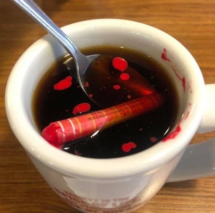1. Amíg egy pillanatra nem figyeltem, a kisfiam kiderítette, hogy a kávém elég forró-e ahhoz, hogy megolvadjon benne a zsírkréta: