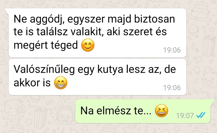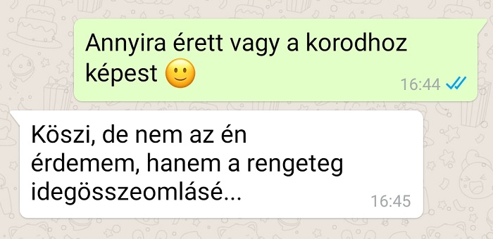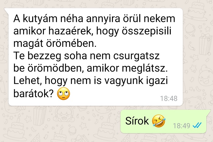 Na, nem a meghatottságtól szöknek könnyek a szemekbe, hanem sokkal inkább az üzenetek szórakoztató mivoltából fakadóan. Legalábbis külső szemlélőként tekintve ezt váltják ki belőlünk, de egyik vagy másik üzenetváltás résztvevői nevében nem tudunk ennyire egyértelműen nyilatkozni.