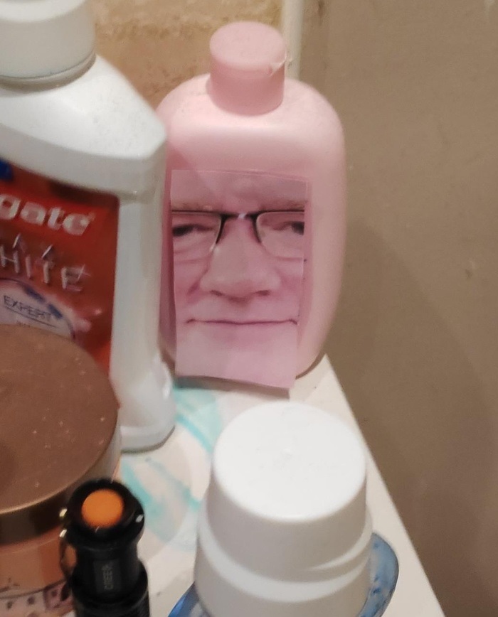 4. Az édesapám kedvenc szórakozása, hogy random tárgyakra ragaszgatja rá a saját arcképét a házban, és várja, hogy mikor vesszük észre. Eddig ez a kedvencem.