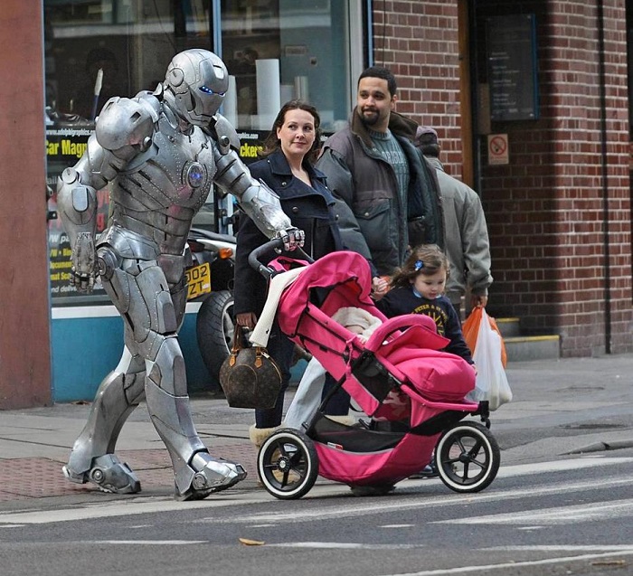 10. Mivel nem tudtam időben hazamenni, ezért megkértem a férjemet, hogy menjen el sétálni a gyerekünkkel. Amikor később rákérdeztem, hogy milyen volt a séta, azt mondta, hogy nem történt semmi különös, csak levegőztek egyet. Pár nappal később azonban ez a kép jött velem szemben az interneten, amin a babakocsit toló férjem látható Vasember jelmezben.