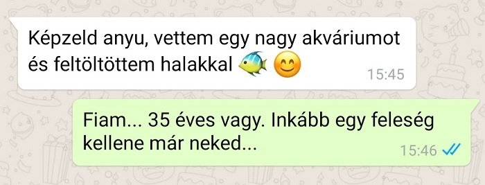 11. Az édesanya az akváriumban úszkáló díszhalak helyett inkább már az unokákat szeretné látni fel-alá rohangálni.