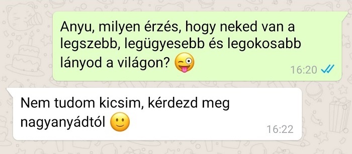 Az elmúlt bő tíz évben az okostelefonok és hasonló kütyük szinte alapfelszereléssé váltak a családon belüli kapcsolattartásban. Az üzenetküldő és chatalkalmazások segítségével a rokonok könnyedén tudnak egymással kommunikálni, főleg akkor, ha éppen nincs lehetőségük személyesen beszélni. Persze a valódi, élő beszélgetést ezek sosem pótolják teljesen, de amíg egyikük a munkahelyén, másikuk az iskolában van, addig tökéletesek gyors üzenetekre vagy villámcsevejekre. Ráadásul egy-egy vicces üzenetváltás sokszor annyira jól sikerül, hogy megéri elmenteni – akár az utókor szórakoztatására is.