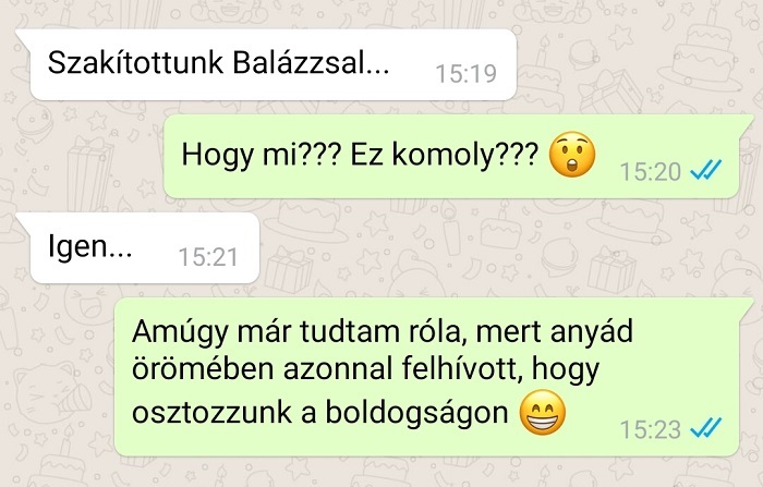 5. A szülőket is megérintette lelkileg a szakítás, csak nem egészen úgy, ahogyan a lányukat.