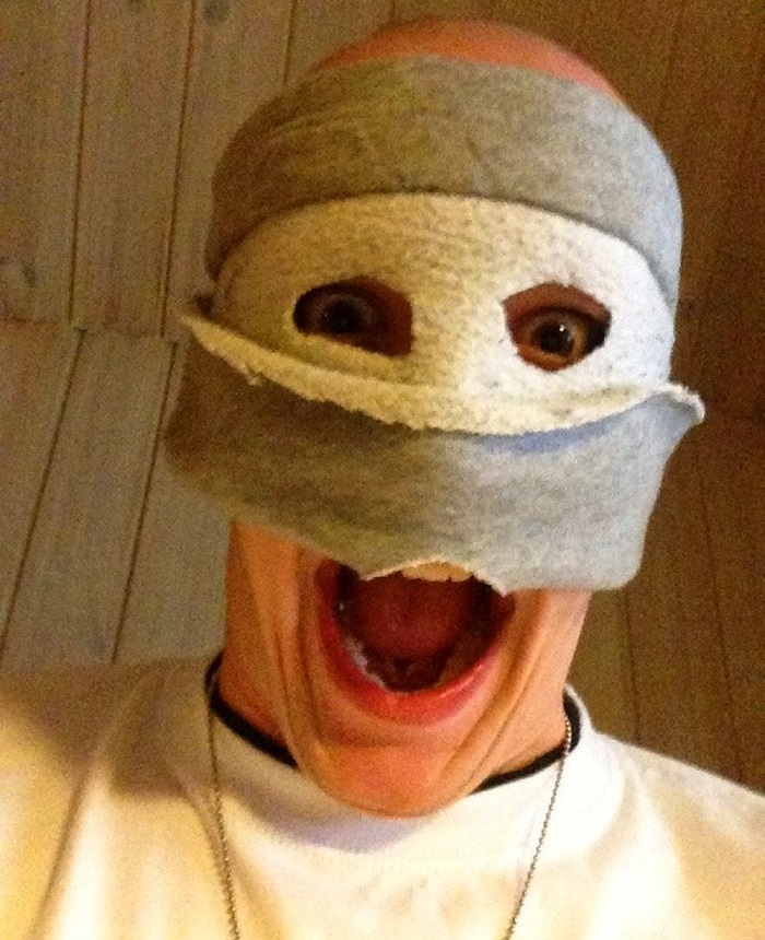 6. Egy jól sikerült házibuli utáni másnapon nem értettem, hogy a kedvenc melegítőnadrágomból miért van kivágva egy nagy darab. Később minden világossá vált, amikor megtaláltam a telefonomban ezt a szelfit: