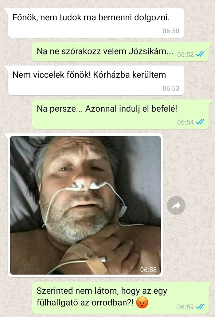 1. Nem rossz próbálkozás, de azért a főnök sem most jött le a falvédőről. Józsinak valószínűleg lesz egy kellemetlen beszélgetése.