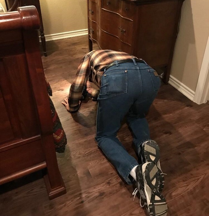 10. Vettem ajándékba egy robotporszívót a nagyszüleimnek, hogy egy kicsit megkönnyítsem az életüket. A nagypapám viszont még nem igazán bízik benne, ezért követi mindenhová, és rajta tartja a szemét.
