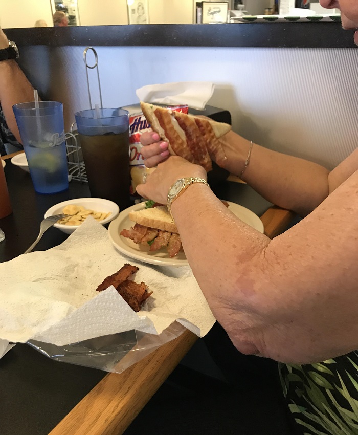 12. A nagyim nagyon szereti a bacont, ezért amikor étterembe megy, mindig visz magával egy kis sült bacont a táskájában, hogy felturbózza vele a rendelt ételt.