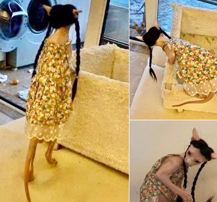 4. Amíg a feleségem elment bevásárolni, én és a gyerekeink tréfából felöltöztettük a macskánkat. Amikor a feleségem hazaért és megpillantotta az ajóban a macskát, visítva eldobta az összes szatyrot, és visszarohant az autóhoz.