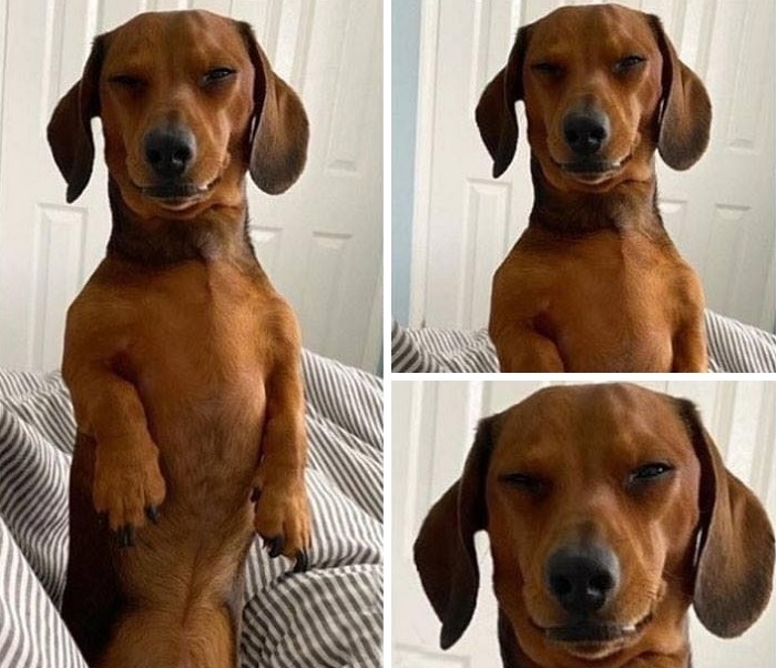 4. A kutyám ilyen fejet vágott, amikor azt mondtam neki, hogy megyünk sétálni, és közben észrevette a kezemben a samponos dobozt: