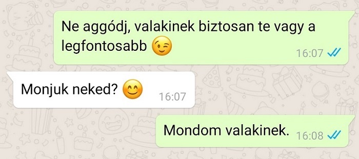 1. Vigasztalja a tudat, hogy bár még ha nem is neki, de azért valakinek a nagy világban biztosan ő a legfontosabb. Még jó, hogy a lány azt nem tette hozzá, hogy mondjuk az édesanyjának.