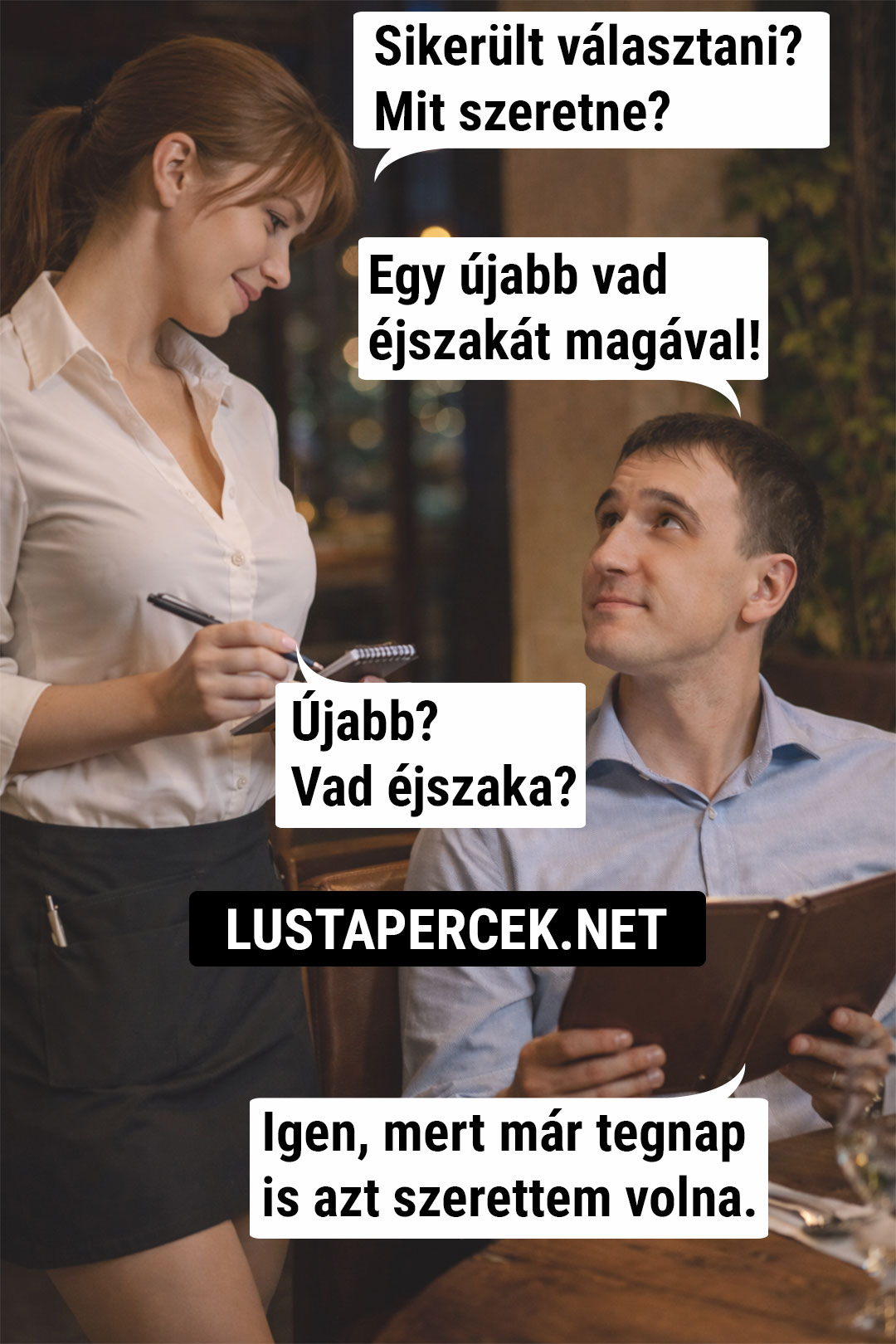 A férfi felnéz az étlapból, és teljes komolysággal válaszol: