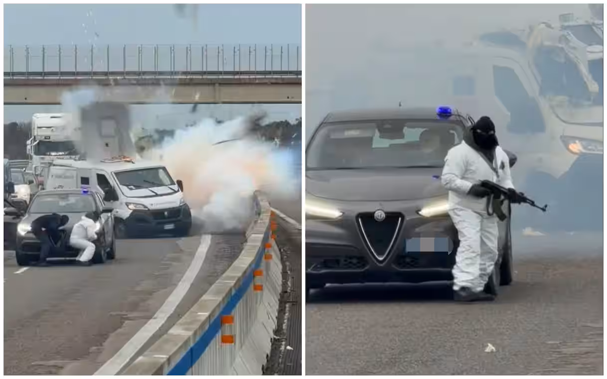 Fegyveres támadás történt hétfő reggel Olaszországban, amikor egy símaszkot viselő, Kalasnyikovokkal felfegyverzett csoport két páncélozott pénzszállító járművet támadott meg a Brindisit és Leccét összekötő gyorsforgalmi úton, Cerano és San Pietro Vernotico térségében. Az akcióról felvételek is készültek.